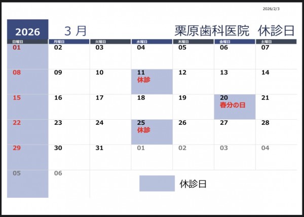 3月の休診日のお知らせ
